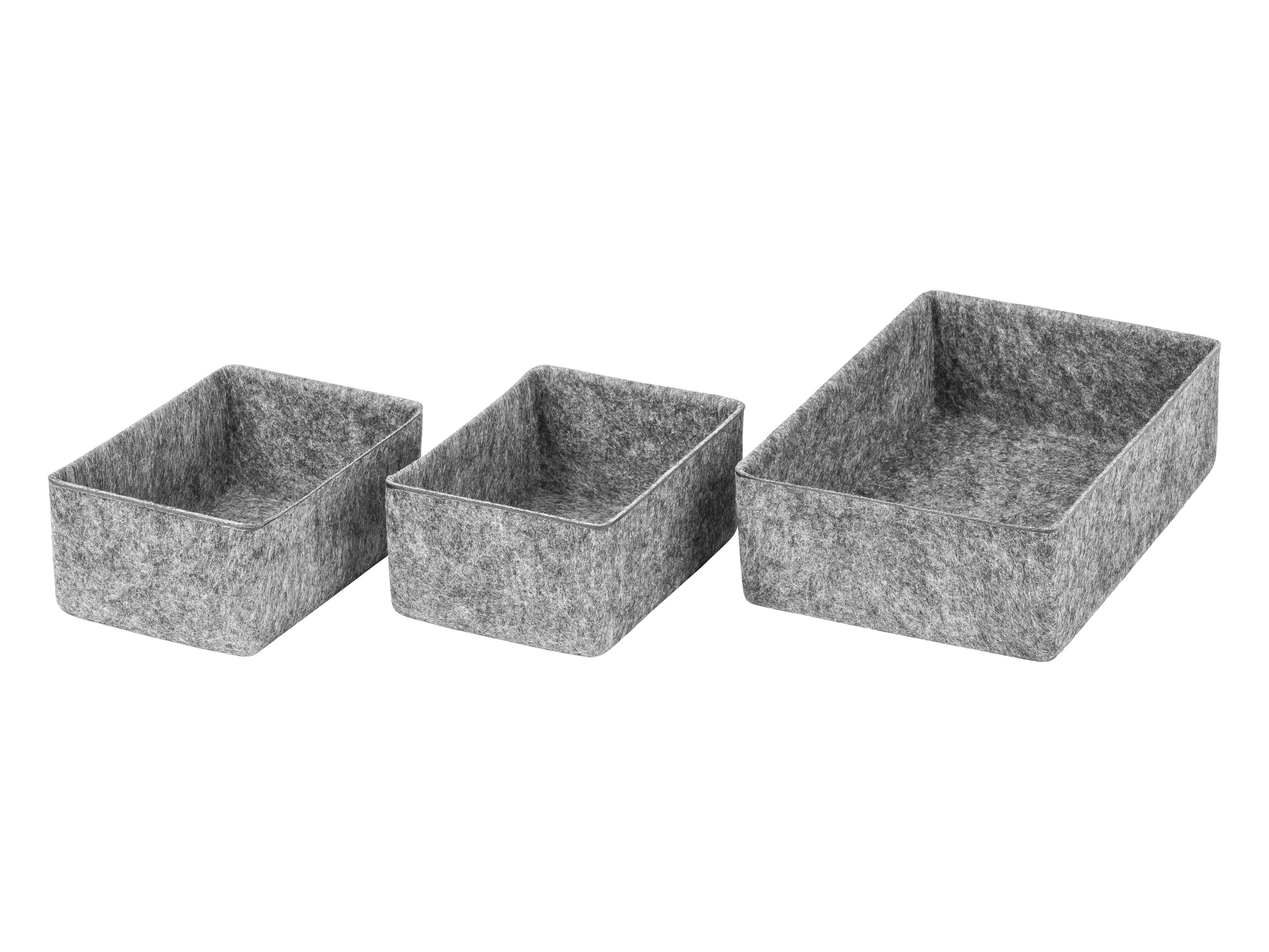 W5 Sada úložných boxů Vlastnosti 2dílná sada Univerzální pomocníci pro udržení pořádku Rozměry: každý cca 25 x 35 x 20 cm D x Š x V Objem: každý cca 17 l Max. nosnost: každý 5 kg Hmotnost: cca 520 g Velký Univerzální pomocník pro udržení pořádku Rozměry: cca 33 x 38 x 33 cm D x Š x V Objem: cca 40 l Max. nosnost: 10 kg Hmotnost: cca 900 g 3dílná sada, malá Ideální do zásuvek; šatních skříní nebo psacího stolu Lze je kombinovat a vkládat do sebe pro úsporu místa Rozměry: cca 24 x 16 x 6,5 cm D x Š x V; velký / cca 16 x 12 x 6,5 cm D x Š x V; 2x malý Objem: cca 2,2 l velký / cca 1,2 l malý Max. nosnost: každý 1,5 kg Hmotnost: cca 300 g Charakteristika produktu tabletd Materiál: plsť